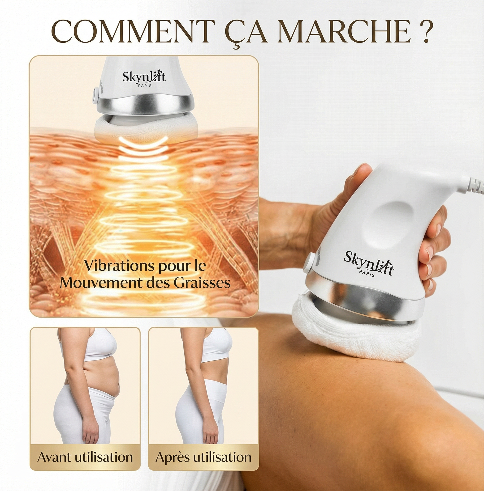 - Contient : Appareil Skynlift, embouts, housses, câble d’alimentation, notice