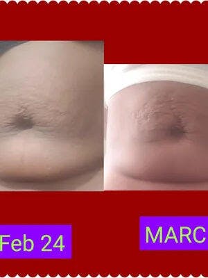 J’avais une cellulite très tenace sur l’extérieur des cuisses, et c’est là que je vois le plus grand changement. La texture de ma peau est vraiment différente, beaucoup moins ‘bosselée’.