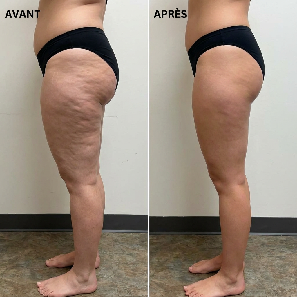 J’avais la peau un peu relâchée derrière les cuisses, et c’est la première chose que j’ai vu changer. La zone est devenue plus ferme et plus tonique, et l’aspect est vraiment plus uniforme. Je ne m’attendais pas à voir une différence aussi nette.